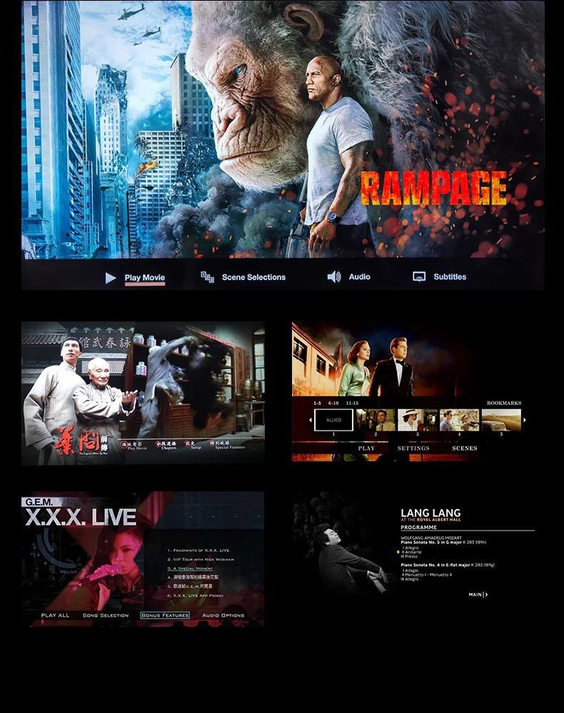 BDP-H650 NEW支持BD和UHD藍(lán)光原版導(dǎo)航菜單,原汁原味的藍(lán)光播放體驗(yàn),讓您更深層次挖掘電影幕后花絮的樂趣。同時(shí)優(yōu)化了視頻播放算法,對(duì)有些特殊文件也可以支持無縫銜接播放,告別播放卡頓問題。