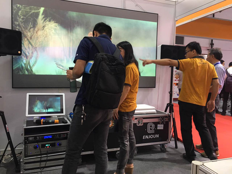 圖片是工作人員為客戶詳細介紹英嘉尼產(chǎn)品和英嘉尼智能影院加盟優(yōu)勢以及優(yōu)惠政策。