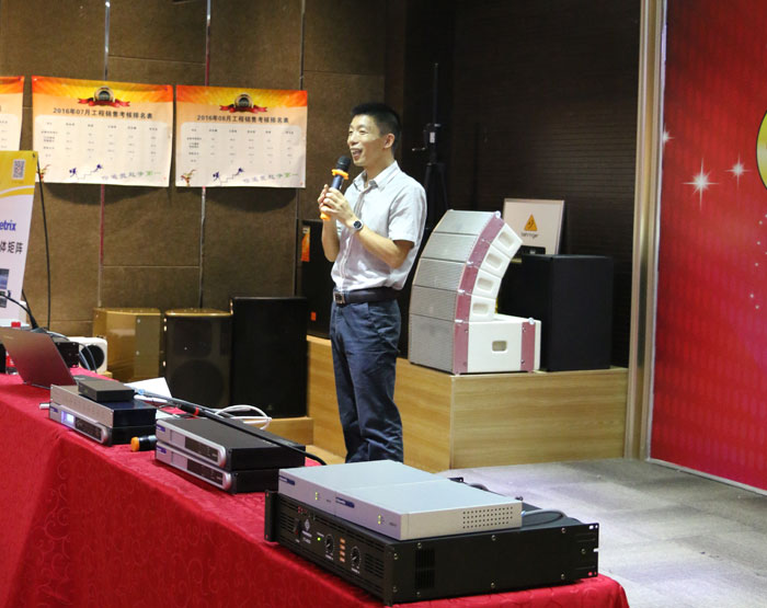 值得一提的是思美的產(chǎn)品介紹部分,一禾企業(yè)作為思美產(chǎn)品的代理商,很多工程項(xiàng)目上也用到思美的產(chǎn)品。因此,在接下來(lái),王經(jīng)理給大家講解了Symetrix數(shù)字音頻媒體矩陣技術(shù)和產(chǎn)品應(yīng)用。