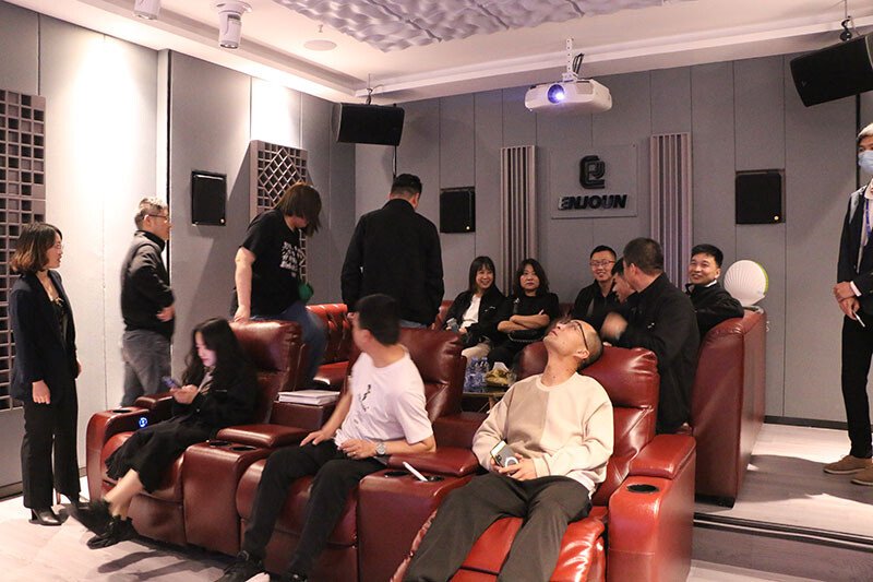 在英嘉尼智能家庭影院品牌總監(jiān)劉美女士和大區(qū)經(jīng)理的陪同下,創(chuàng)維集團(tuán)交流學(xué)習(xí)團(tuán)參觀了英嘉尼總部公司,現(xiàn)場(chǎng)體驗(yàn)英嘉尼隱形家庭影院和智能影音室兩大展廳的音響效果,同時(shí),對(duì)英嘉尼的品牌背景、發(fā)展歷程、品牌優(yōu)勢(shì)和產(chǎn)品優(yōu)勢(shì)有了更深入的了解。