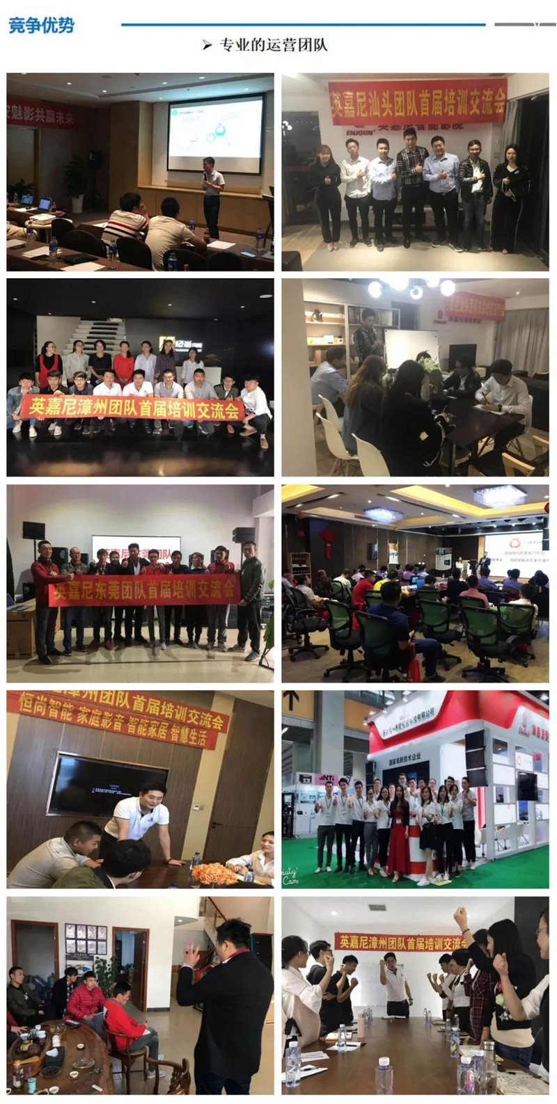 英嘉尼品牌以人才為企業(yè)的寶貴資源,以員工的高素質(zhì)作為基礎(chǔ),管理團隊包括營銷團隊、市場團隊、技術(shù)團隊、設(shè)計團隊、網(wǎng)絡(luò)推廣團隊,均擁有較為成熟的行業(yè)經(jīng)營管理經(jīng)驗,可快速幫助加盟客戶建立品牌在當?shù)氐挠绊懥皹I(yè)務(wù)體系,極大地降低成本,提升產(chǎn)品增值能力和體驗店銷售額。