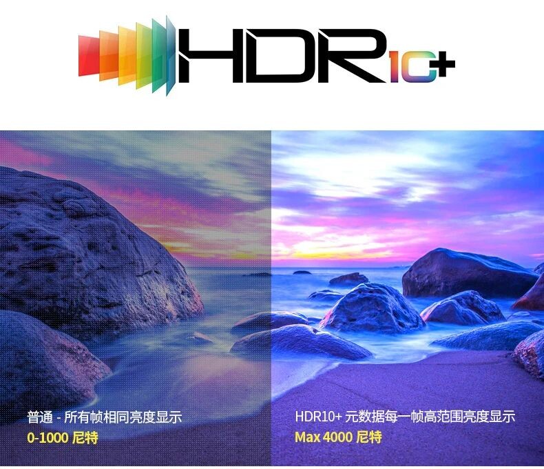 支持HDR10+、12Bit超高色深、680億色彩輸出